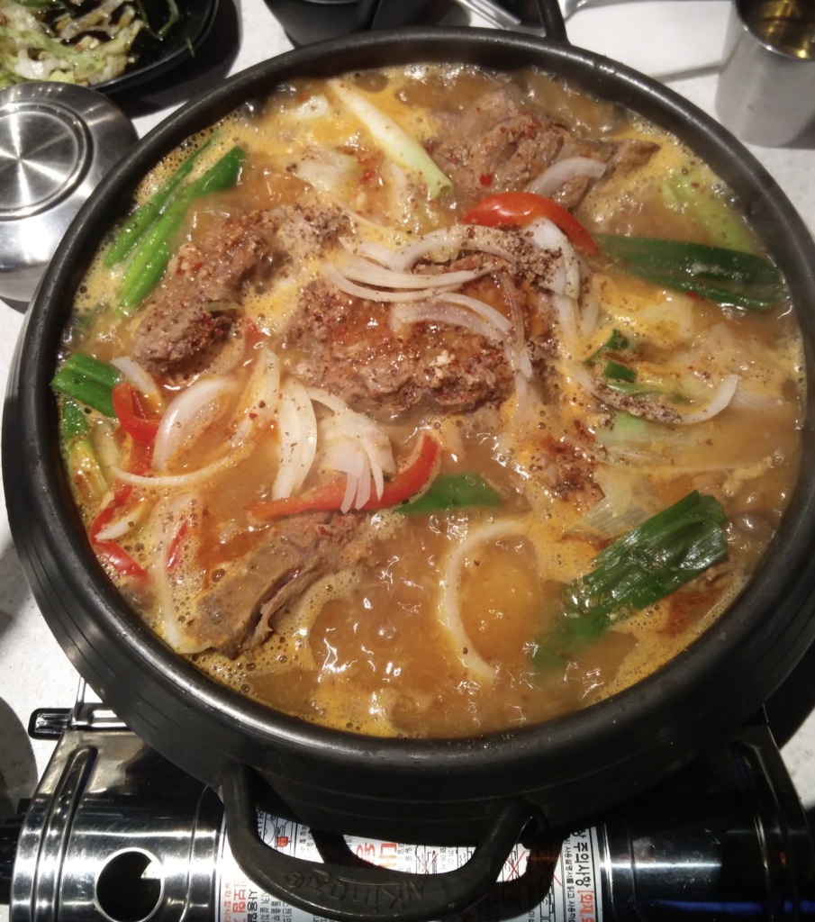 Gamjatang Jeongol (Pork back-bone hotpot – a little spicy): Costs $28.95 and feeds approximately 3 people. This traditional style pork bone broth is my favourite go-to-dish at any Korean restaurant. Every Korean restaurant makes it definitely as the chef uses different seasonings and herbs to enrich the pork bone broth. I particularly enjoyed this one at YOOK as the broth is not overly spiced and has a small spicy kick at the end. I loved how their broth is very light and not heavily spiced with herbs so you are able to taste the richness of the pork meat as well. The meat is so tender that it falls off the bones as you are trying to pick it up from the pot.